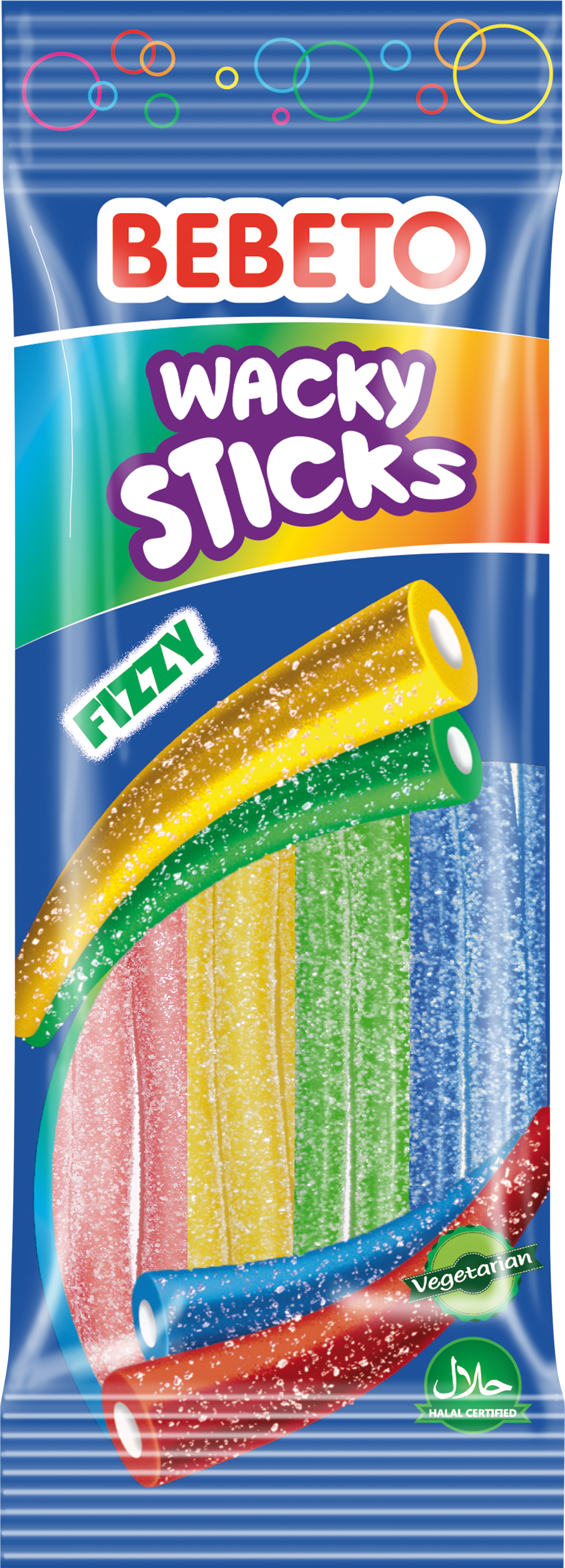 BEBETO Wacky Sticks Jeleuri gumate aroma de tutti frutti 75 gr