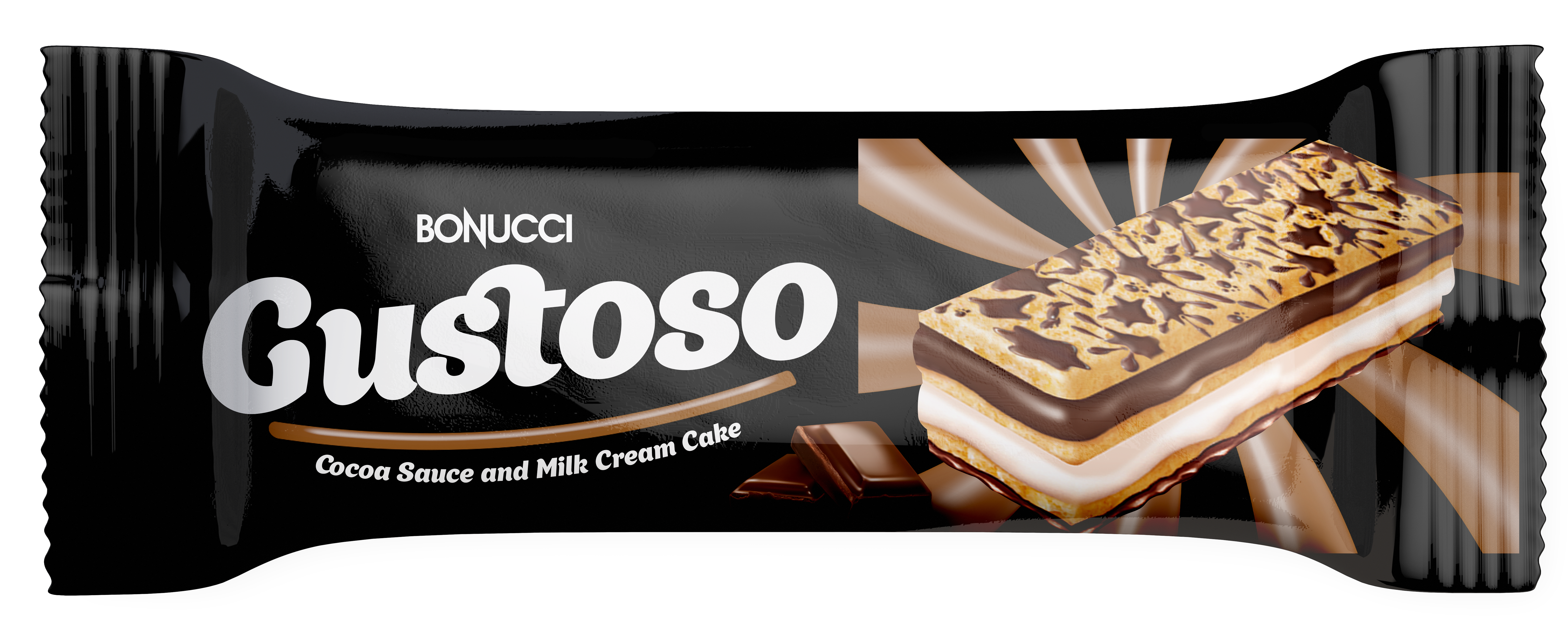 BONUCCI GUSTOSO Prajitura cacao cu glazura de ciocolata si sos de fructe de padure 50 gr
