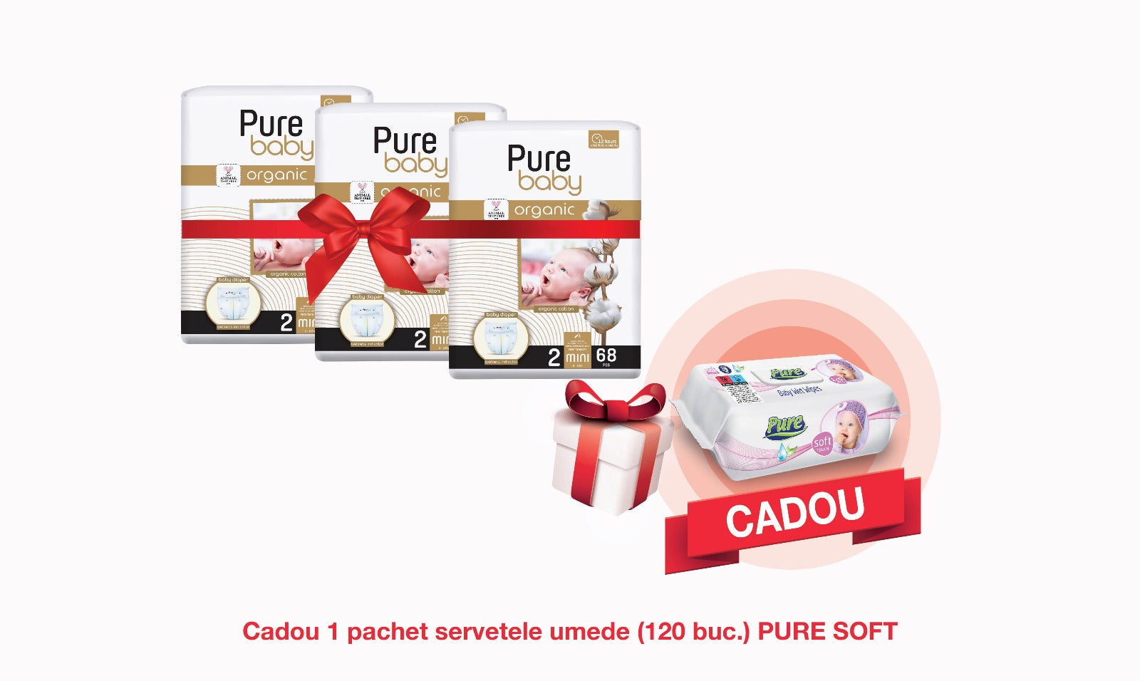 Pachet Promo: 3x PURE BABY Organic (2 MINI) + CADOU Servetele Umede Pure Soft (120 buc.)