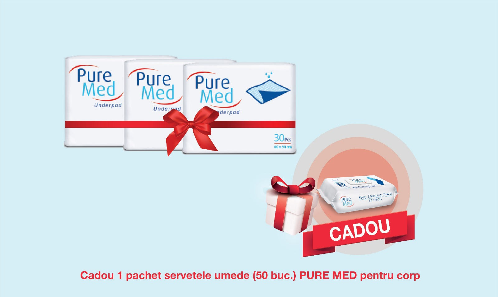 Pachet Promo: 3x PURE MED Aleze PURE MED 30 buc (60x90 cm) + CADOU Servetele Umede Pure MED (50 buc.)
