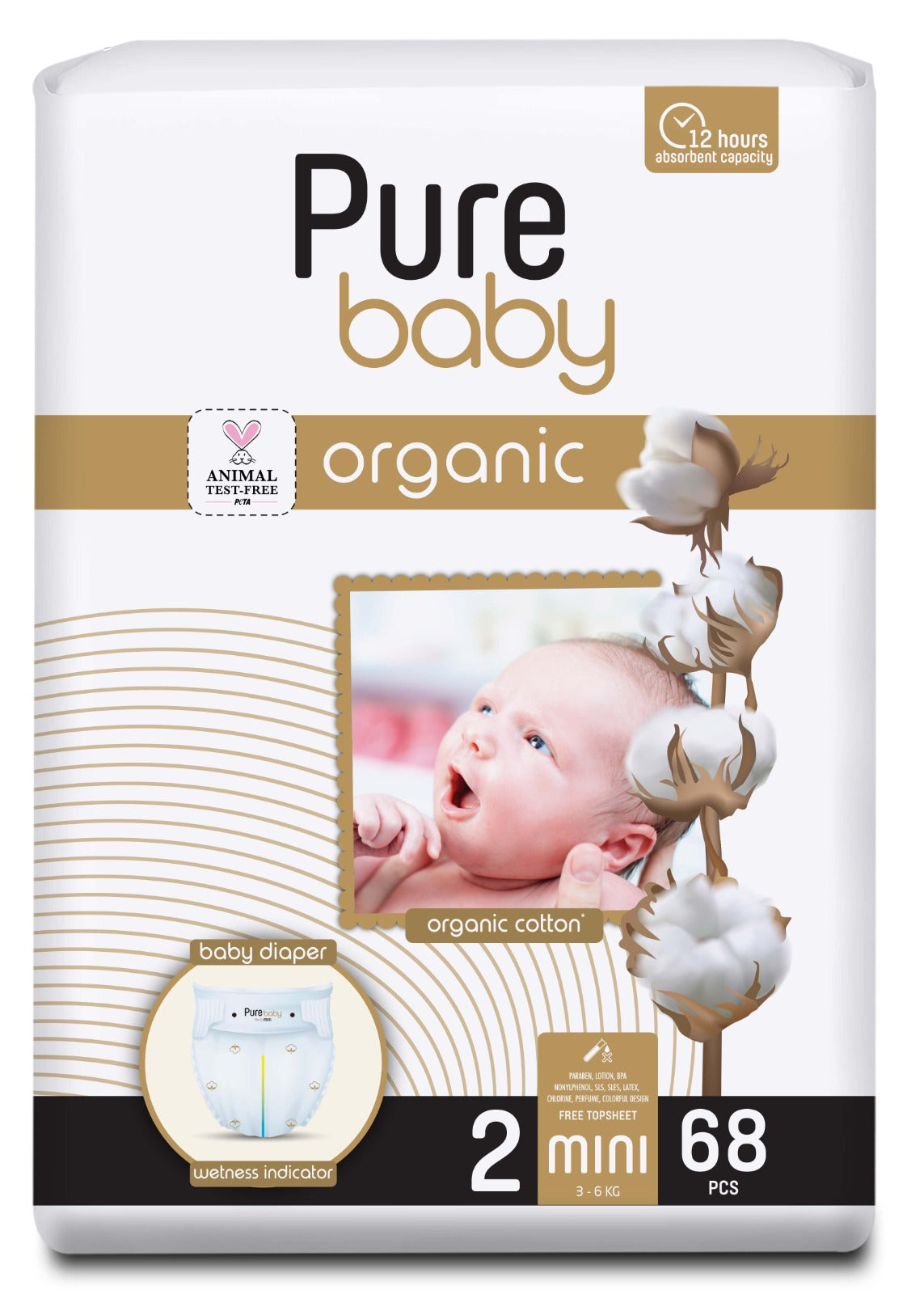 PURE BABY Organic scutece Nr. 2, 68 buc