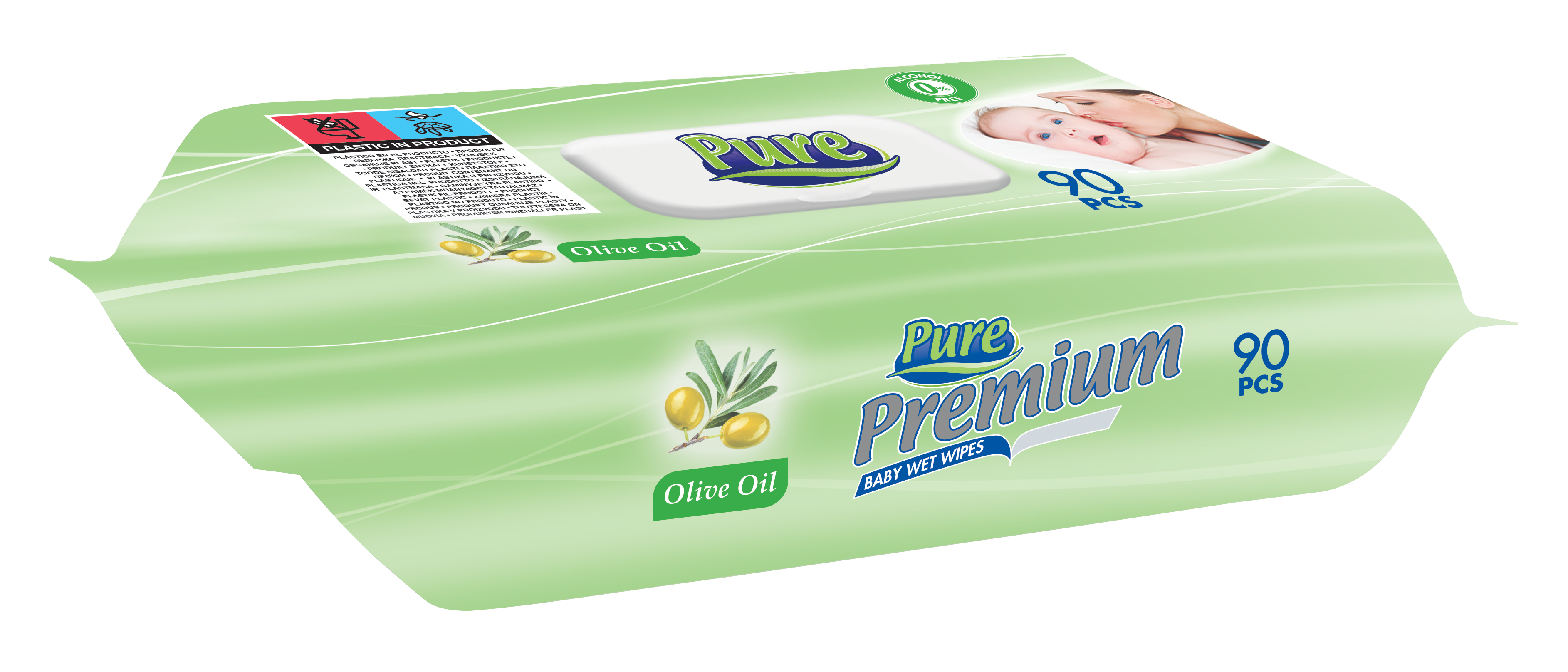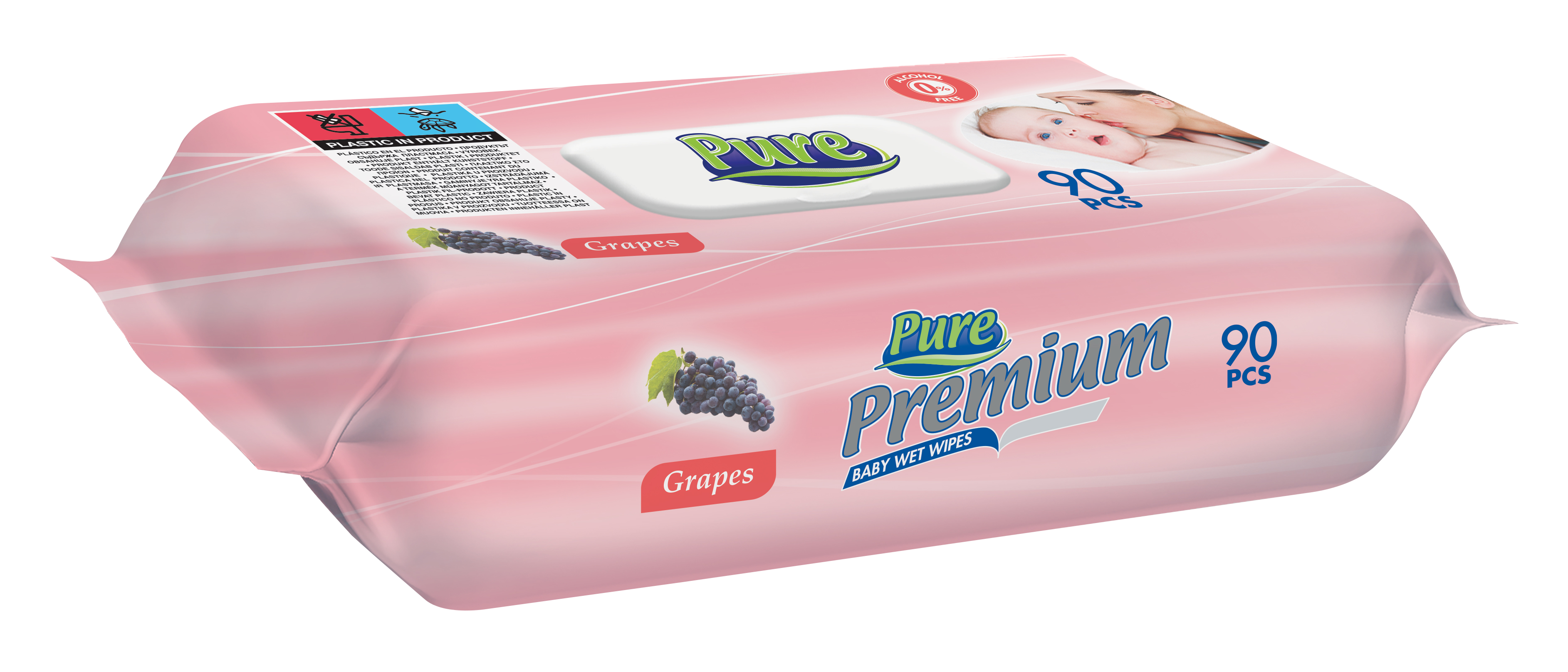 PURE PREMIUM Servetele umede pentru copii cu capac 90 buc